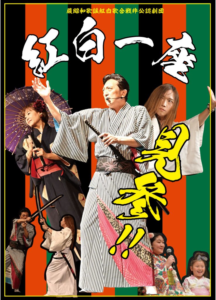 蕨⭐︎ツナズクラブが誇る蕨紅白歌合戦非公認劇団「蕨⭐︎紅白一座」。蕨市民音楽祭・昭和歌謡紅白歌合戦への出場が縁で集まったメンバーは今年も全員無事出場できました。子どもたちに人気?の「とうやおにいさん」を加えての歌謡ショーは一体どうなることやら・・・